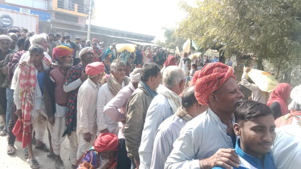 महुआ की दो समितियों में 920 यूरिया खाद के कट्टे वितरण, समिति के बाहर लगी लंबी कतार।