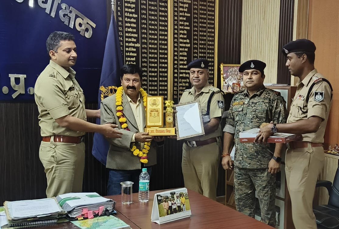 एसपी सूरज कुमार वर्मा ने प्रशंसित पत्र और पुष्पहार पहनाकर दी विदाई।