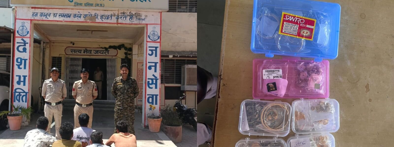 और दतिया जिले के अलग अलग स्थान एवं भिंड जिले कि अलग अलग स्थानों से चोरी किया गया माल जब्त किया जिसकी कीमत करीब 21 लाख रुपए के बजन करीब 12 तोला सोना और 1.5 किलोग्राम चांदी के लगभग विधिबत जब्त किया गया है।