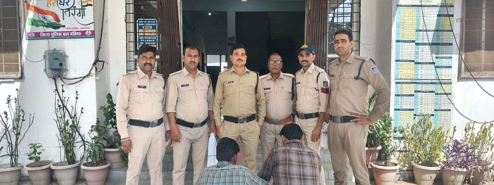 सराहनीय कार्यवाही- उपरोक्त कार्यवाही मे निरी. धीरेन्द्र मिश्रा थाना प्रभारी थाना कोतवाली दतिया, उनि अंशुल अरोरा, सउनि राजेन्द्र पुट्टा, प्रआर 195 शिव गोविन्द, प्रआर 739 ब्रजमोहन उपाध्याय, प्रआर 640 ब्रजराज तोमर, आर 698 रविन्द्र यादव, आर 765 आनंद तोमर,