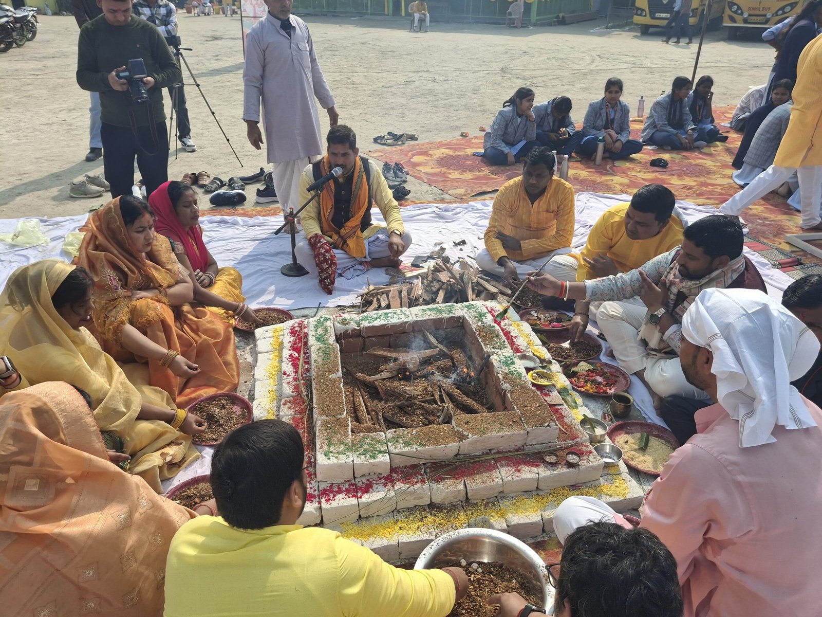 विधि विधान से पूजा अर्चना व हवन कुंड में स्कूल के सभी अध्यापकों और बच्चों बच्चियों ने हवन किया।