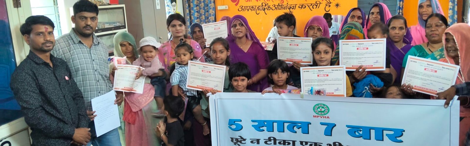 एम पी वी एच ए यूनिसेफ द्वारा ग्राम सभा में पूर्ण टीकाकरण वाले परिवार को आंबेडकर जयंती पर हेल्थ किट व प्रमाण पत्र वितरित किए