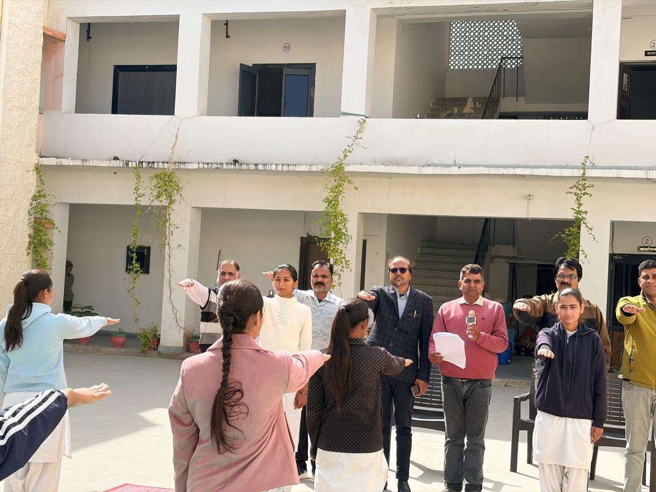 शाहपुरा-राजेन्द्र खटीक। शाहपुरा-जिला शिक्षा एवं प्रशिक्षण संस्थान के स्टाफ और छात्राध्यापकों ने माध्यमिक शिक्षा विभाग राजस्थान के आदेश अनुसार जिला शिक्षा एवं प्रशिक्षण संस्थान शाहपुरा में सूर्य सप्तमी के पूर्व दिवस पर सामूहिक सूर्य नमस्कार किया गया।