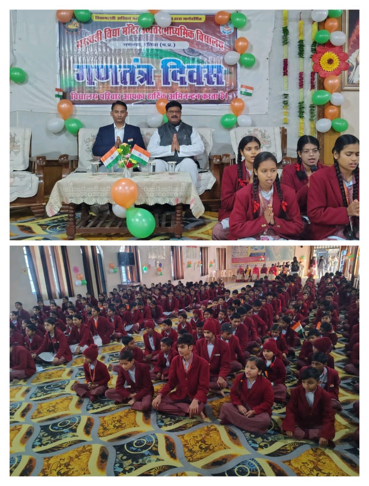 दतिया। आज दिनांक 26/01/2026 को सरस्वती विद्या मंदिर उच्चतर माध्यमिक विद्यालय भरतगढ़ मे 77वां गणतंत्र दिवस का कार्यक्रम हर्षोल्लास के साथ मनाया गया कार्यक्रम का शुभारंभ अतिथियों द्वारा