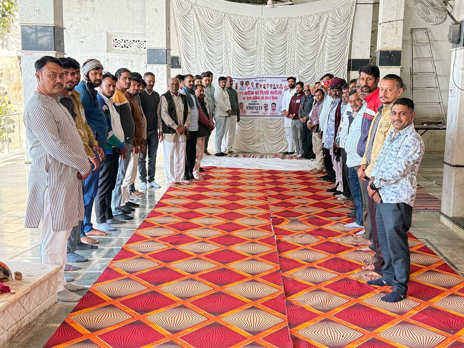 शाहपुरा-राजेन्द्र खटीक। शाहपुरा-कांग्रेस पार्टी द्वारा 14 दिसंबर को दिल्ली के रामलीला मैदान में प्रस्तावित महारैली को सफल बनाने के उद्देश्य से शाहपुरा बनेड़ा ब्लॉक एवं नगर कांग्रेस की संयुक्त बैठक आयोजित की गई। बैठक के मुख्य अतिथि विधायक प्रत्याशी नरेन्द्र कुमार रैगर रहे तथा कार्यक्रम की अध्यक्षता नगर कांग्रेस कार्यवाहक अध्यक्ष रमेश सेन ने की।